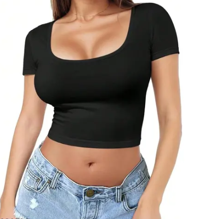 Square Neck Half Sleeve Crop Top for Women & Girls | Stylish Casual Wear, square neck top, square neck top for women, square neck crop top for women, square neck tshirt for women, Women Casual Wear Square neck half sleeve crop top, Square Neck Fitted Top, Square Neck Crop Top for girls in Black, All list Solid Squre neck in Brown, Women Casual Wear Square Neck Half Sleeve Cotton Blend Ribbed TopTrendy Latest Women Tops & Tunics